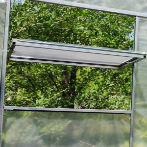 Drzwi a wietrzenieOba szczyty szklarni „Almir” mają jedne drzwi i dwa okna. Drzwi mocowane są za pomocą zawiasów, posiadają uchwyty i klamry zapobiegające niezamierzonemu otwarciu. Okna mocowane są za pomocą rygli, co zapewnia ich obrót wokół osi poziomej przy 360°C. |