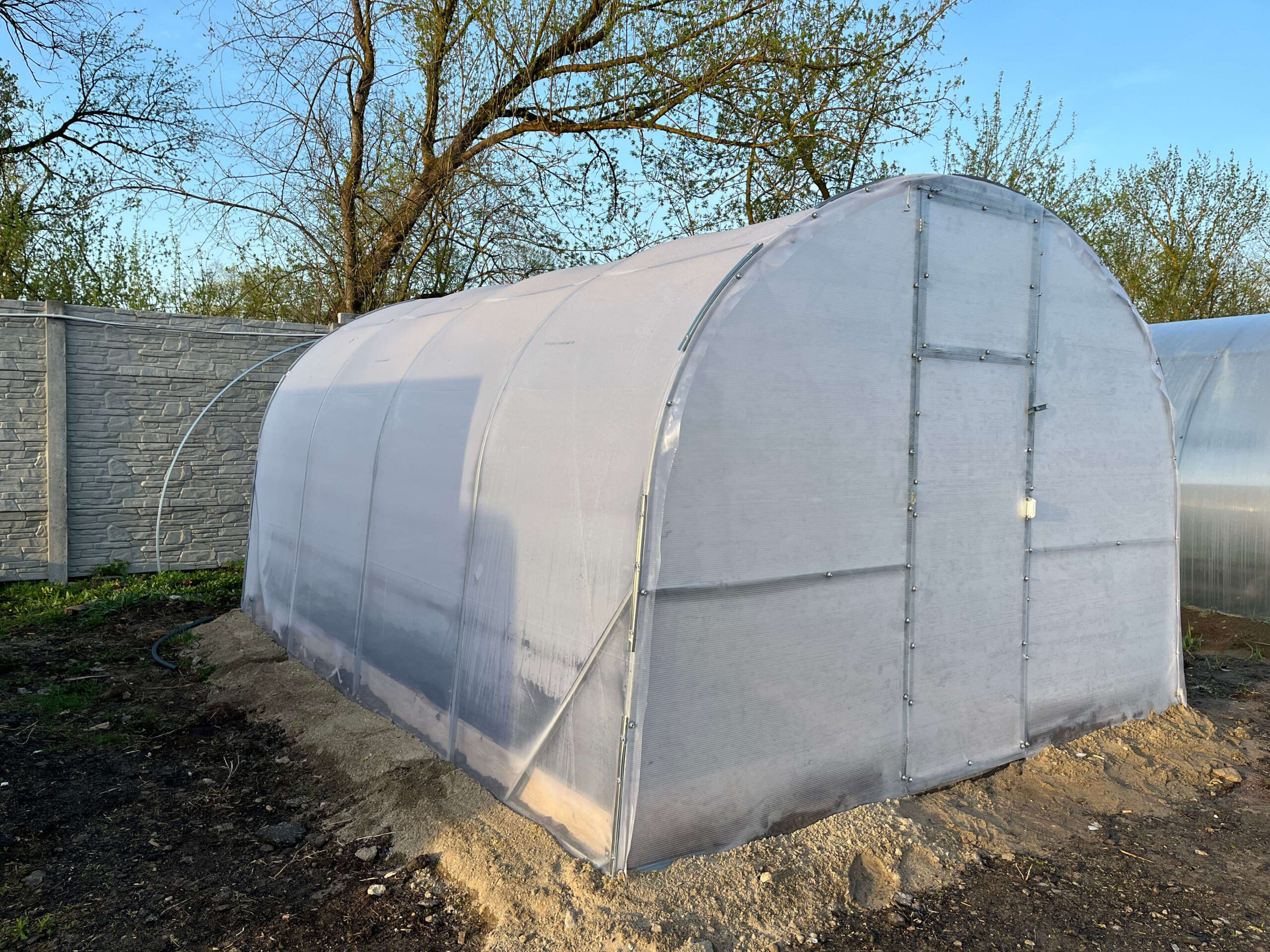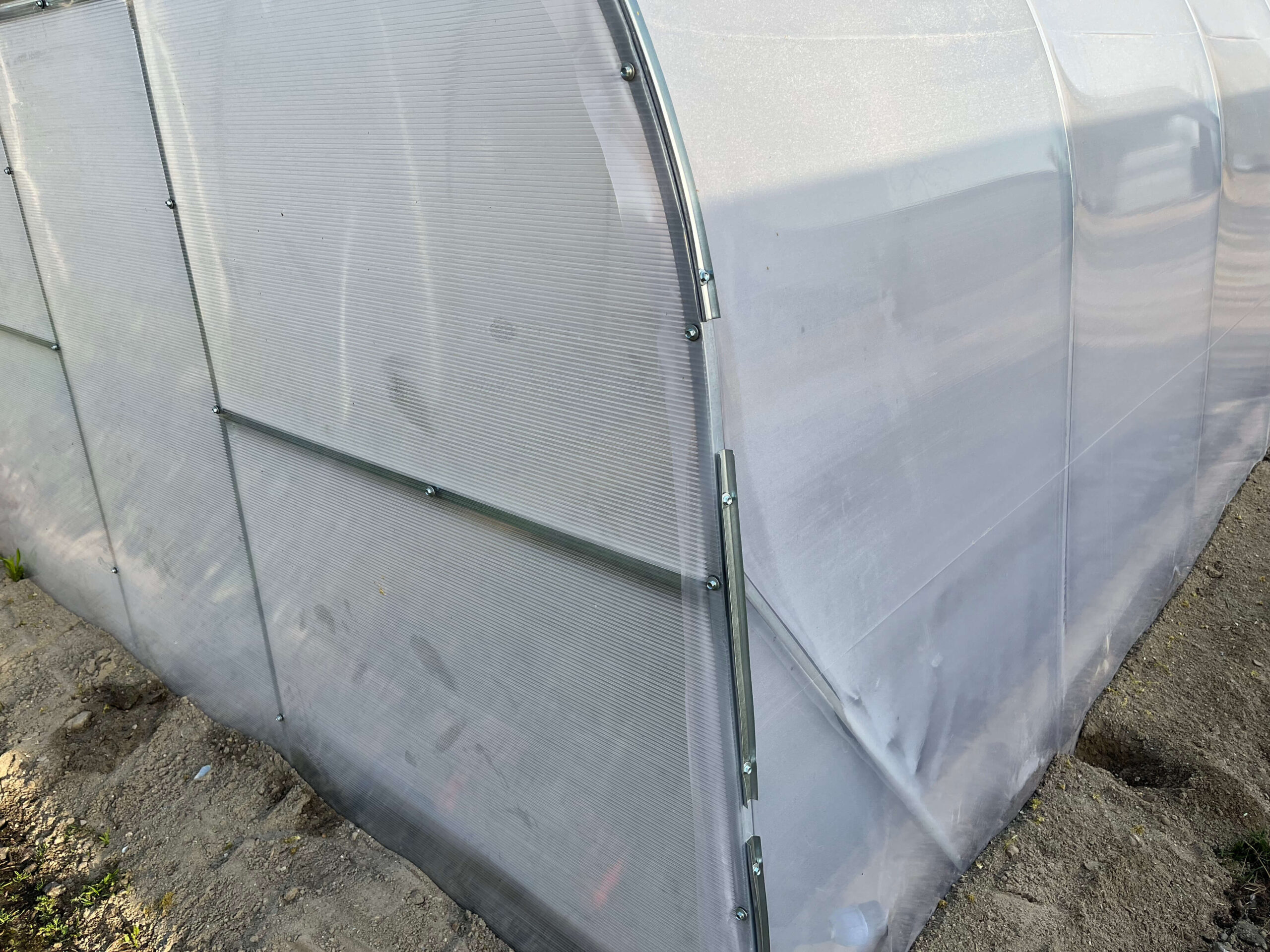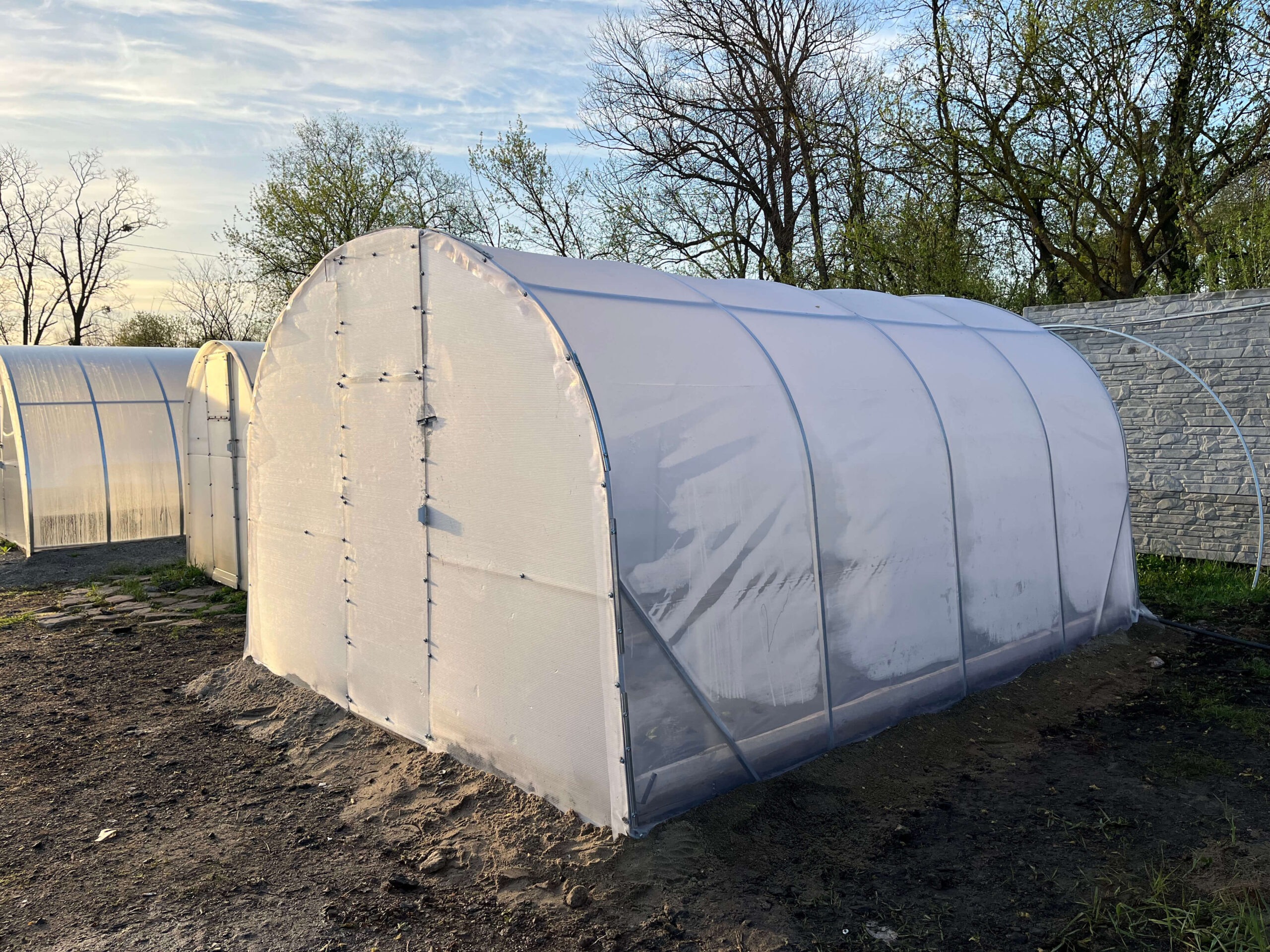 Poliwęglan i folia wysokiej jakościTermin eksploatacji poliwęglanu jest od 8 do 10 lat w zależności od warunków pogodowych i nie trzeba go zdejmować pod czas okresu zimowego. Posiada odporność na promienie UV4. Szklarnia jest również wyposażona w folię stabilizowaną światłem. Folia ma 3-letnią żywotność (gwarancja producenta). Folia szklarniowa spełnia następujące funkcje: Przepuszcza światło niezbędne do szybkiego wzrostu roślin; |