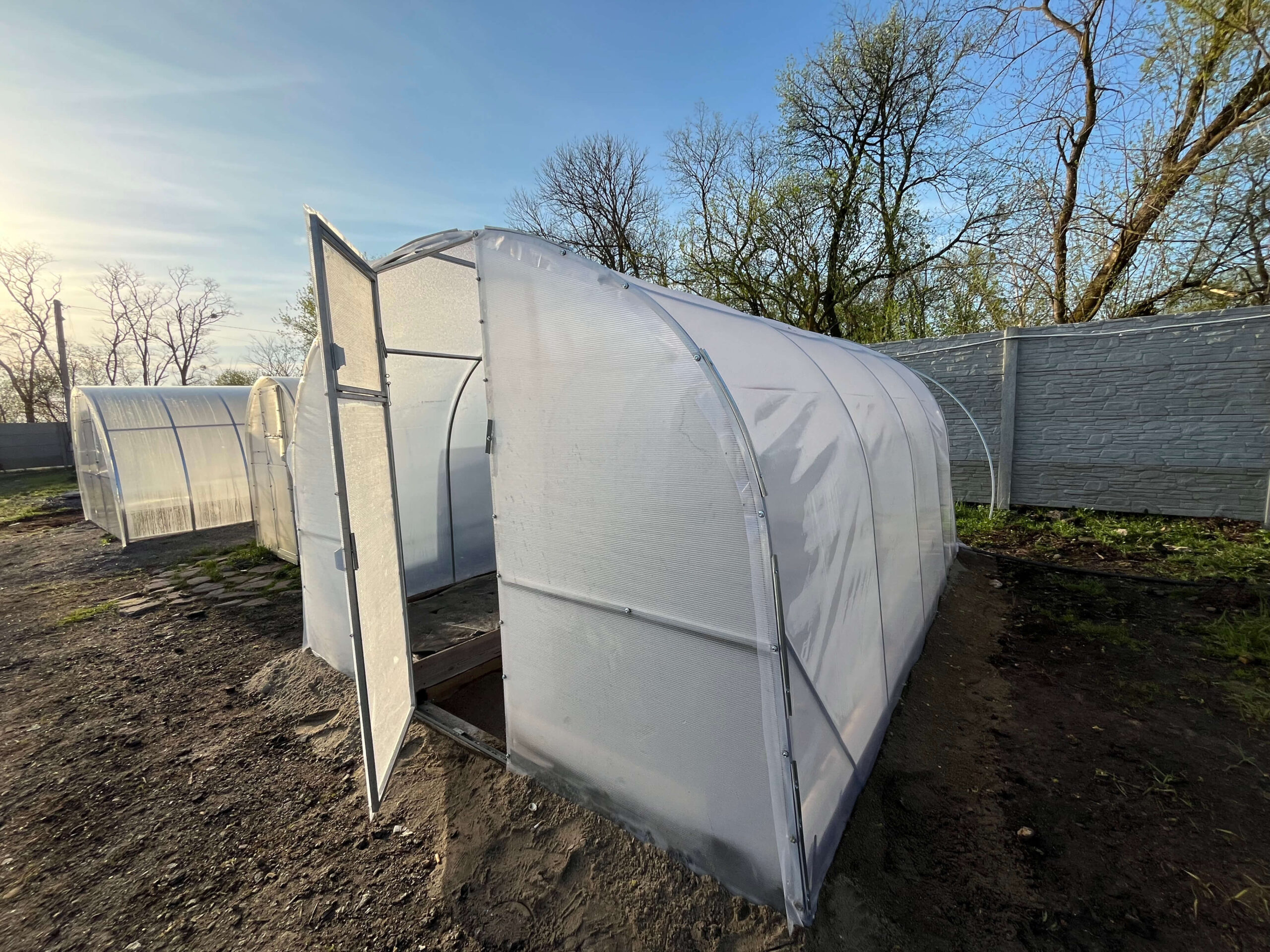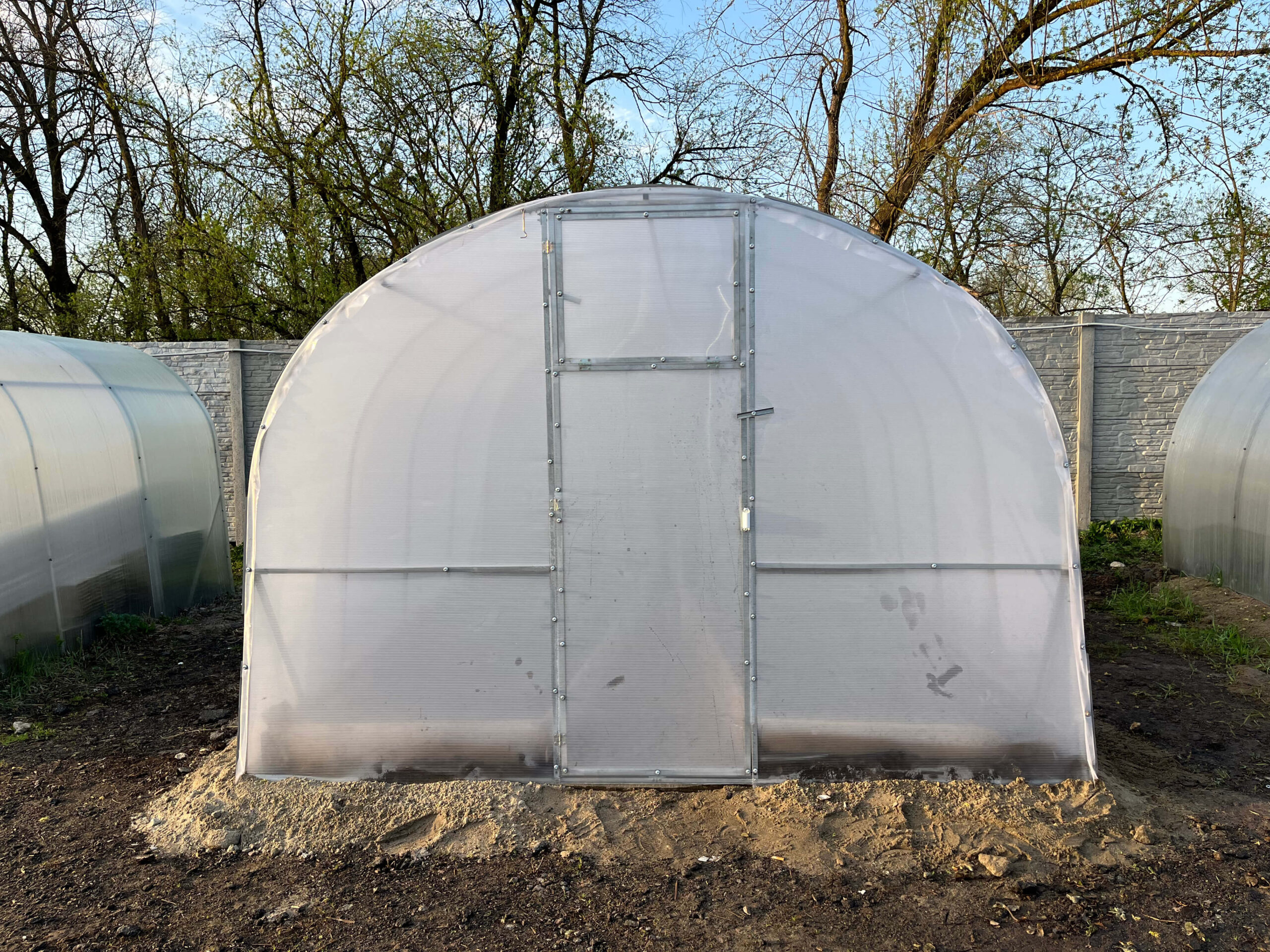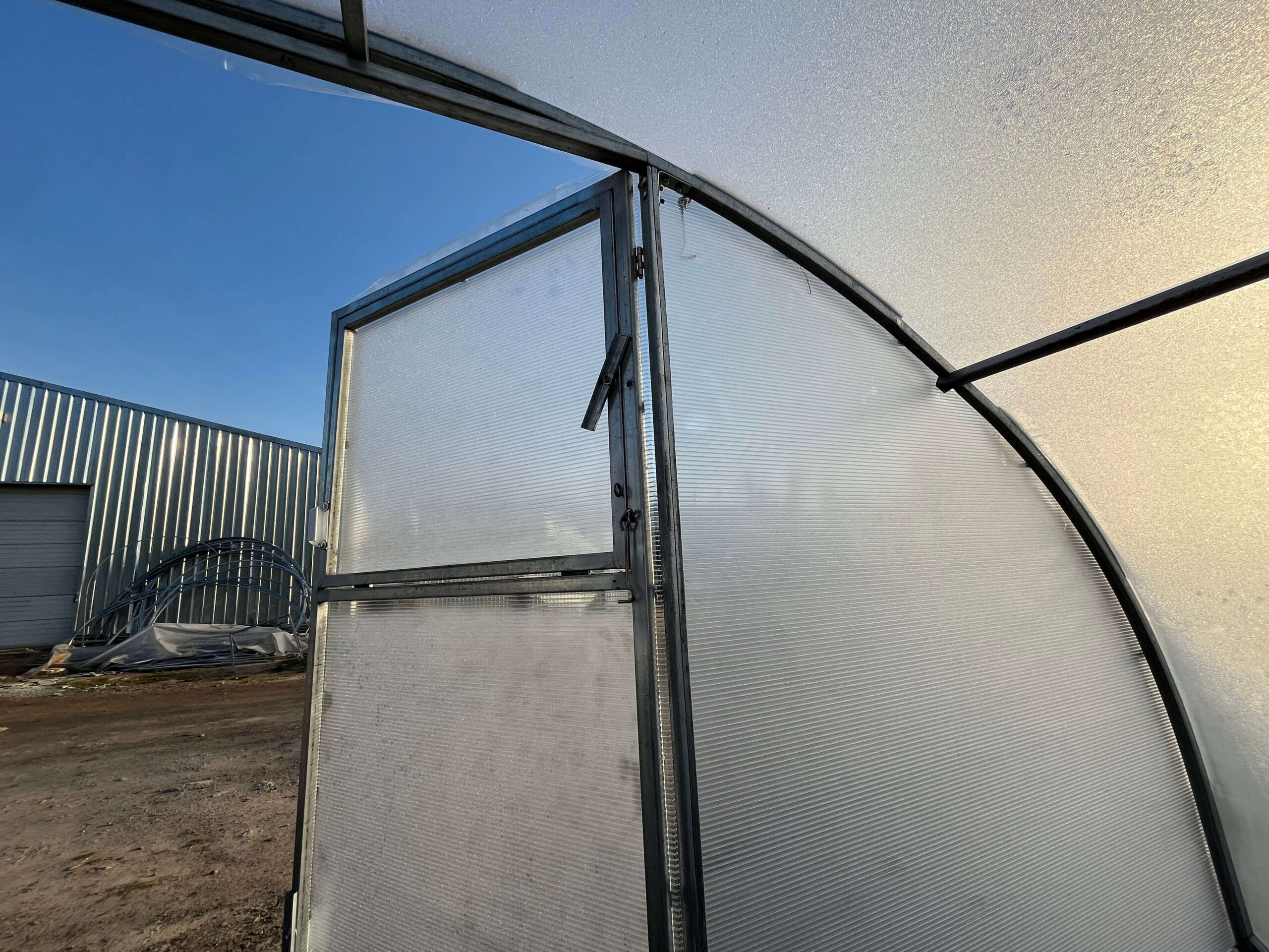 Poliwęglan i folia wysokiej jakościTermin eksploatacji poliwęglanu jest od 8 do 10 lat w zależności od warunków pogodowych i nie trzeba go zdejmować pod czas okresu zimowego. Posiada odporność na promienie UV4. Szklarnia jest również wyposażona w folię stabilizowaną światłem. Folia ma 3-letnią żywotność (gwarancja producenta). Folia szklarniowa spełnia następujące funkcje: Przepuszcza światło niezbędne do szybkiego wzrostu roślin; |