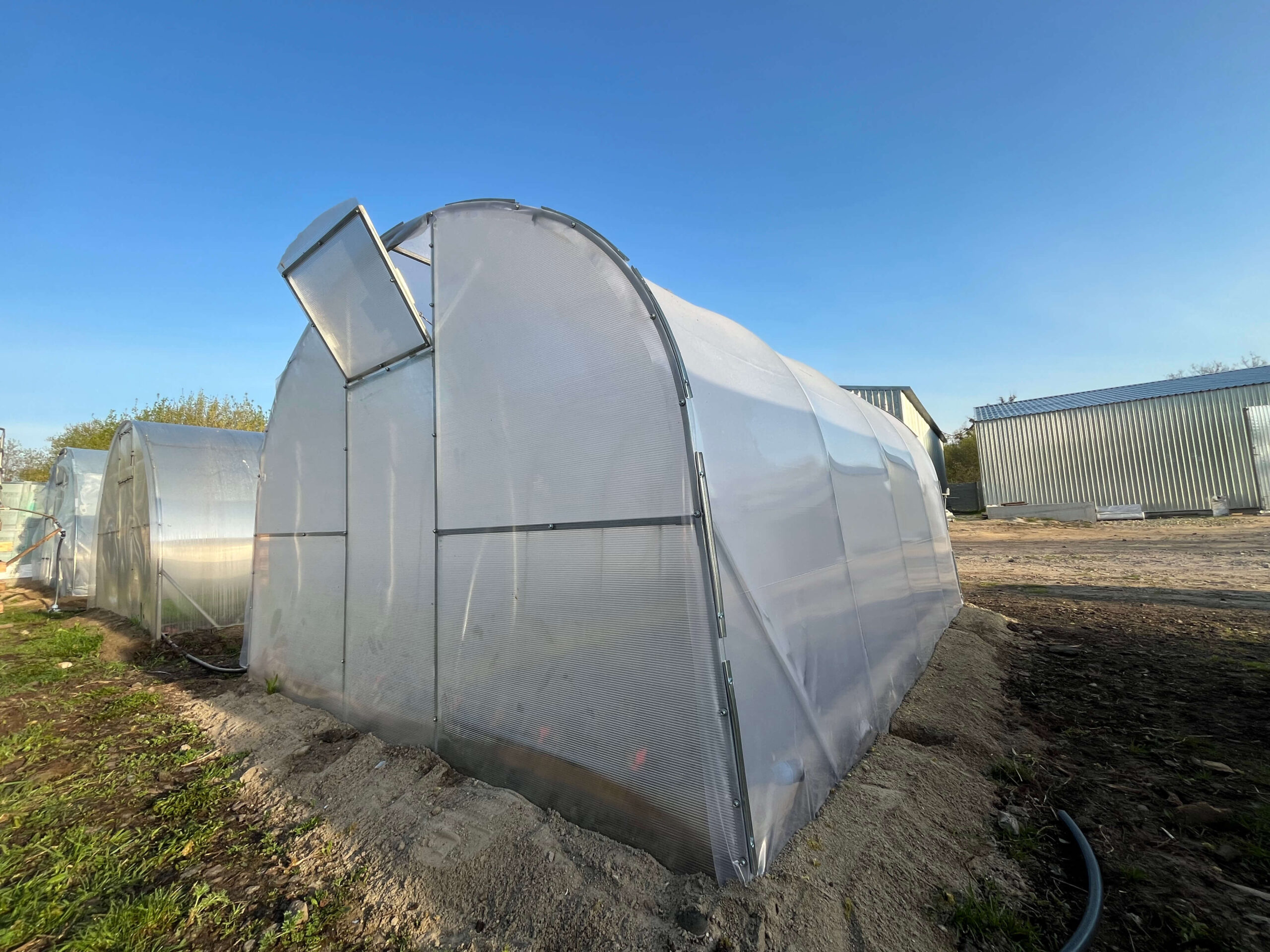 KompletacjaTunel jest zaopatrzony w komplet sprzętu niezbędnego do jego montażu: szczegółowa instrukcja, profile do montażu stelażu, szczyty do których zostały już zamontowane jedne drzwi i 2 lufciki, śruby, nakrętki, zawiasy, zasuwki, mocowania dla poliwęglanu (wkręty samowiercące), folia poliwęglan, profile. |