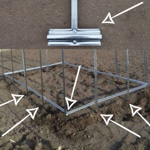 Instalowanie przy pomocy kotwicW komplecie tunelu są skręcane T-kształtowe kotwice, które łączą się teleskopowo do pałąków a futryn szczytów od dołu i są wpełni wkopywane w ziemie na 20-25 cm. |
