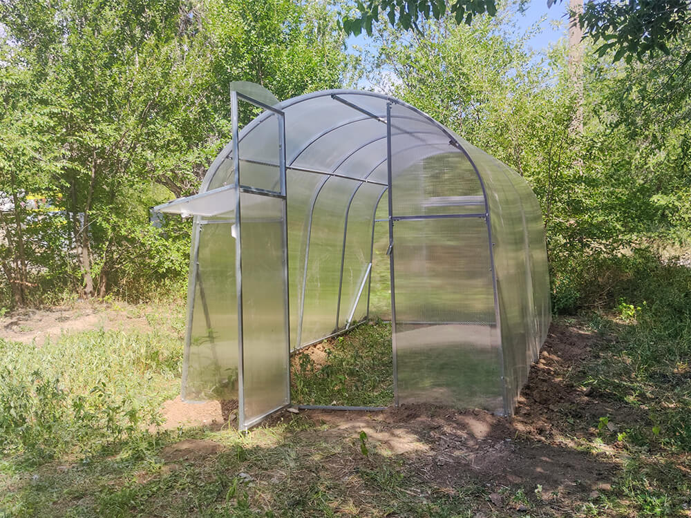 KompletacjaTunel jest zaopatrzony w komplet sprzętu niezbędnego do jego montażu: szczegółowa instrukcja, profile do montażu stelażu, jedne drzwi, 2 lufciki, śruby, nakrętki, zawiasy, zasuwki, mocowania dla poliwęglanu (wkręty samowiercące), poliwęglan 3, 4 lub 6 mm, profile. |